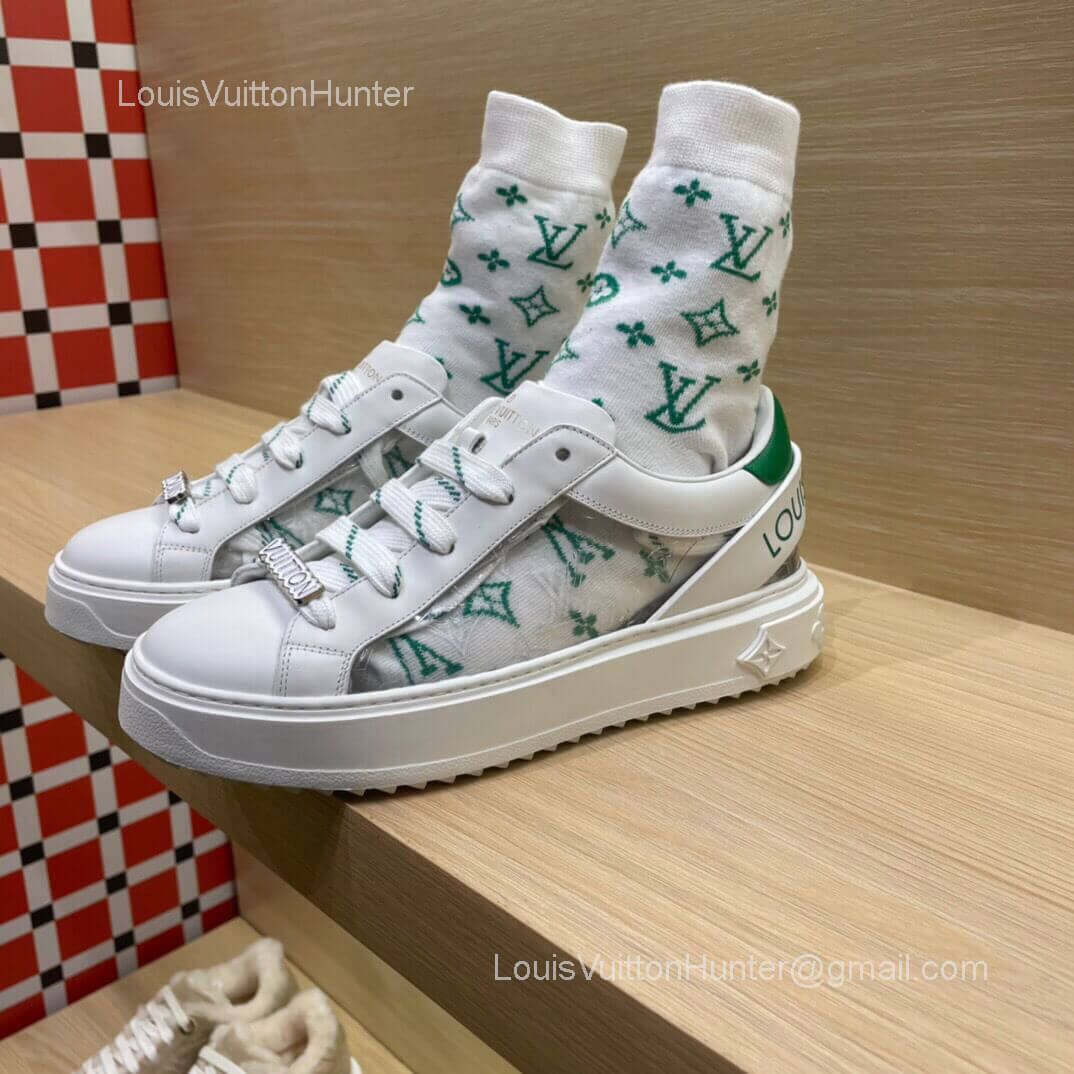 Louis Vuitton Time Out Sneaker with Green Monogram Socks in White Calf Leather 2281830